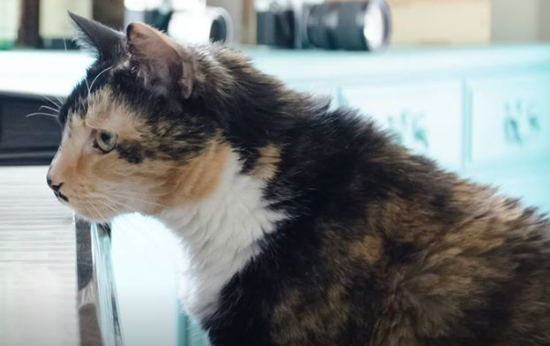 So, something mottled is spotted or blotched with different colors. Here's Mia, who has mottled fur: