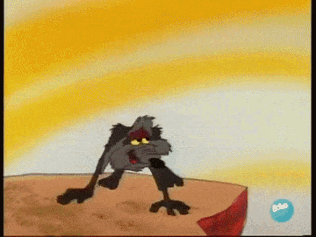 Coyote goes down feet-first here. I really wanted a gif of him going headfirst, though. Can we just imagine it? Headfirst, off the cliff. Pshoooo.